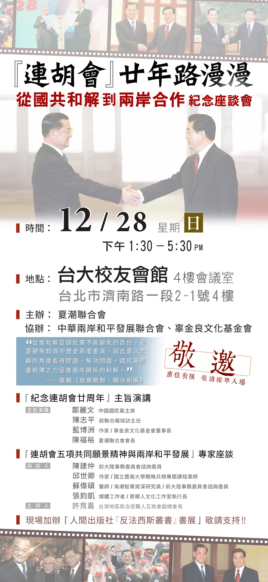 敬邀:【連胡會廿年路漫漫─從國共和解到兩岸合作】(12月28日下午)